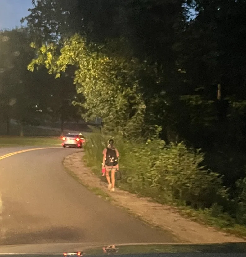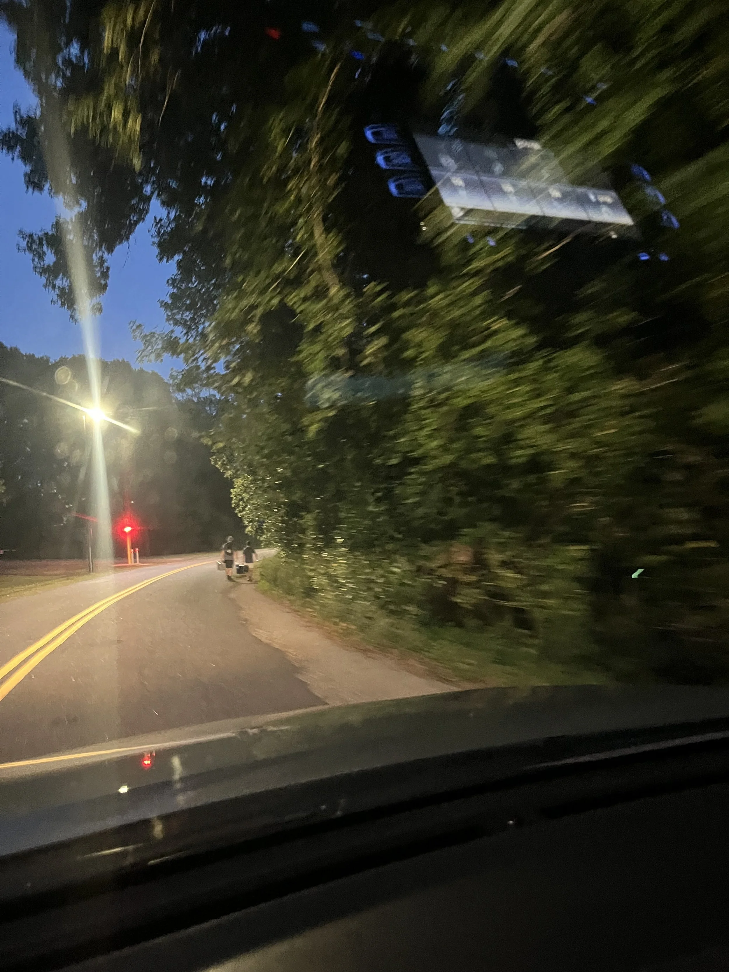 Band members walking back along road after practice. Note the Call Box red light on opposite side of the road (1 of 4 in Intramural fields). These pictures were taken in August when it was still light at 8pm.